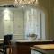 solid teak countertop with draining grooves sitting over a honed black granite sink surround supporting two stainless steel undermount bowls